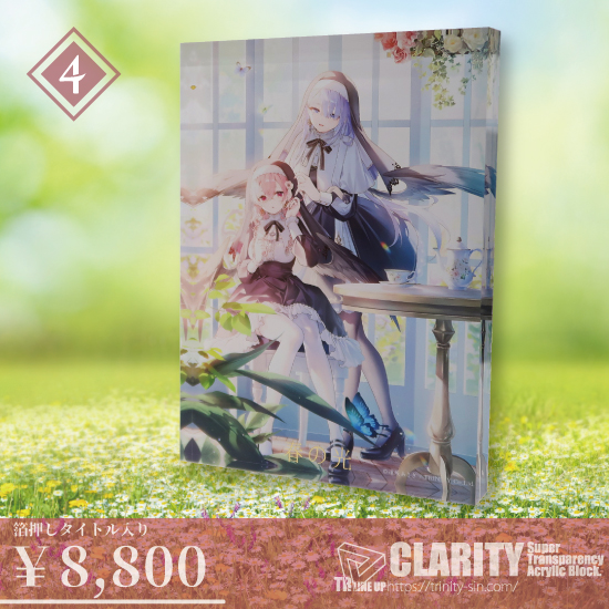 ▼4.アクリルブロック(B6/箔押し入り) 8,800円(税込み)