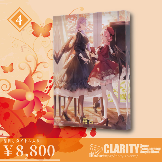▼4.アクリルブロック(B6/箔押し入り) 8,800円(税込み)